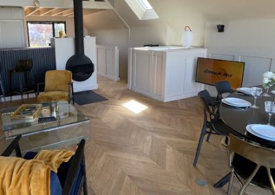 Notre cuisine entièrement équipée vous offre tout ce dont vous avez besoin pour préparer de délicieux repas lors de votre séjour. Avec un grand réfrigérateur, un four et une plaque de cuisson et sa hotte aspirante centrale intégrée ainsi que tous les ustensiles de cuisine nécessaires, vous pourrez préparer tout ce que vous désirez.